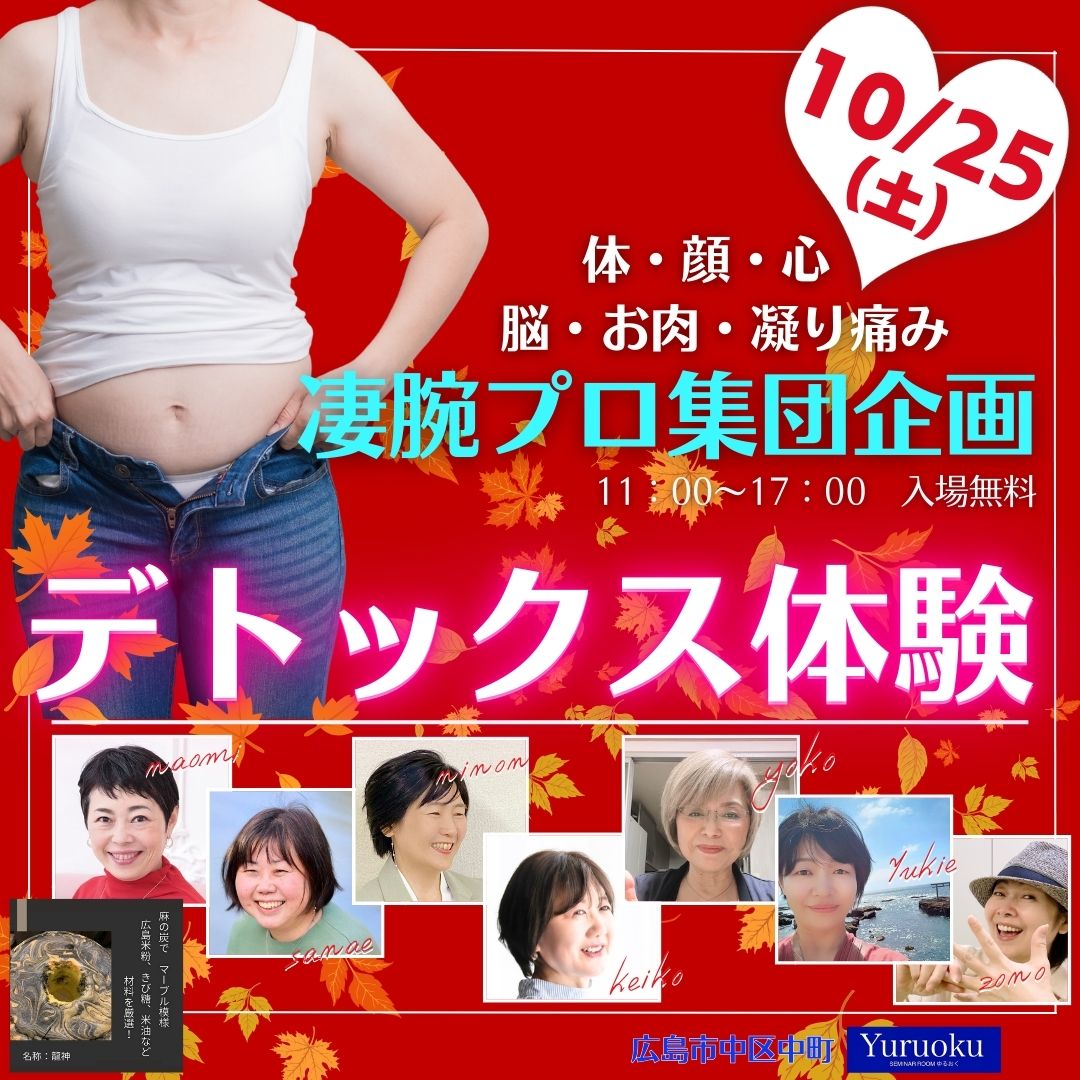 10/25(土) 顔・体・心・脳・思考・お洒落・コリ痛み疲れ!【デトックス体験】ゆるおくイベント